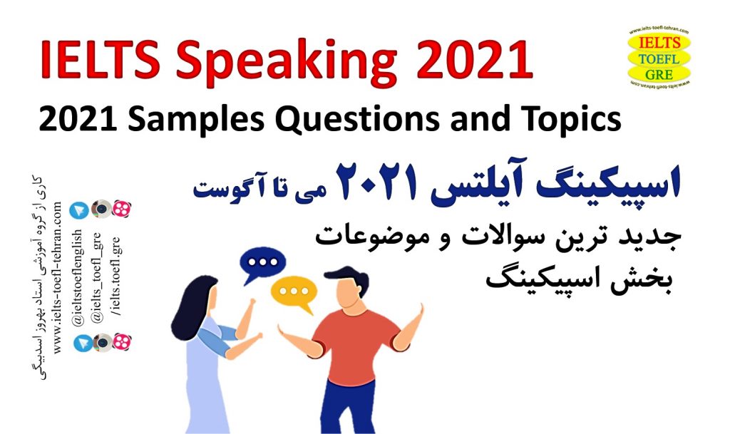 این لیست شامل حسوالات جدید اسپیکینگ آیلتس از ماه May تا August سال 2021 است. این موضوعات توسط زبان آموزان تهیه شده و ممکن است شامل اشتباهاتی نیز باشد.