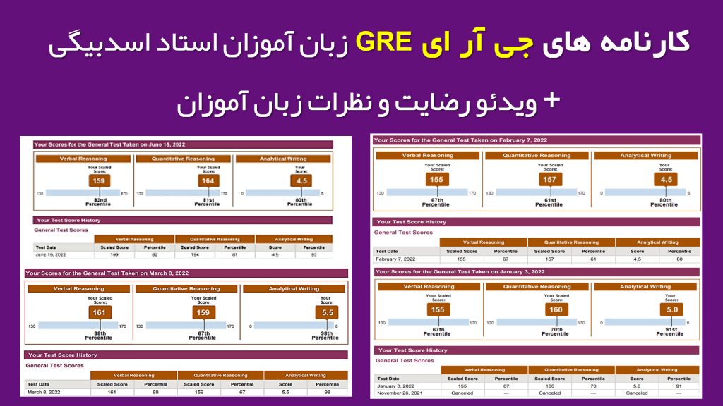کارنامه های جی آر ای GRE زبان آموزان
